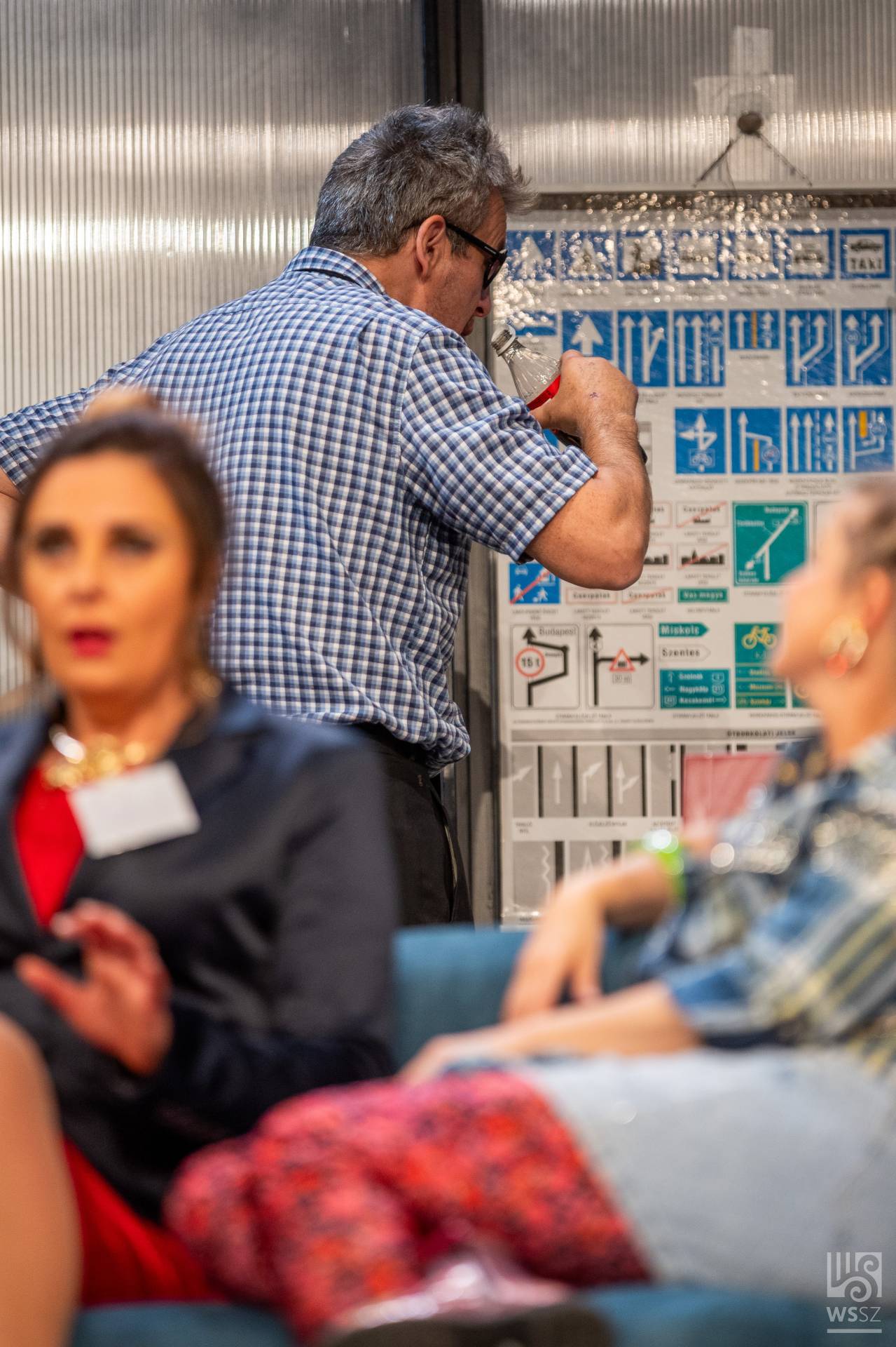 Az előadásban nem magát az „utánképzést” játsszuk el, hanem a mögötte rejlő kérdést: képes-e az ember valóban megváltozni, ha egyszer hibázott? És még tovább: vajon meg tudjuk-e bocsátani magunknak azt, amit mások talán sosem fognak? Nem ítélkezni akarunk, inkább figyelni. Tizenegy ember – tizenegy tükör. Mind másképpen törött. Ma, amikor mindenki mindent jobban tud, különösen fontos emlékeztetni magunkat arra, milyen nehéz valóban szembenézni a hibáinkkal. Ez az előadás erről a szembenézésről szól – és arról a furcsa humorral átitatott fájdalomról, amit úgy hívunk: Élet.