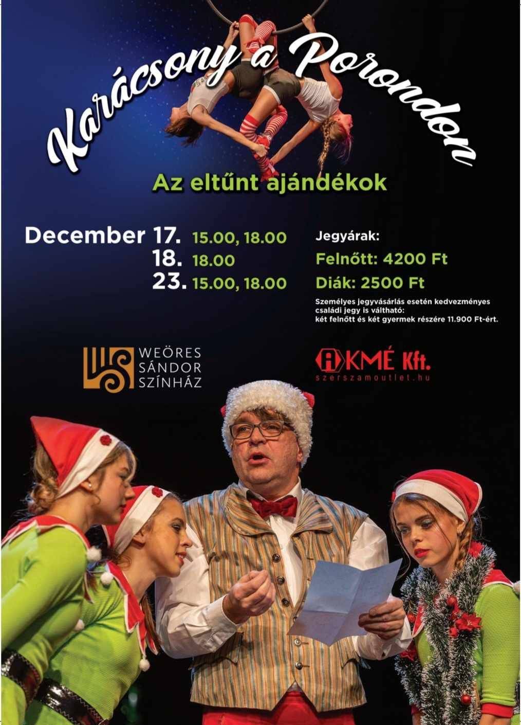 Varázslatos karácsonyi hangulat, látványos revüműsor: immár 3. alkalommal látható a Szombathelyi Kötélugró Klub és a Weöres Sándor Színház közös ünnepi gálaestje. Látványos artista elemek, légtornászok, táncos- és zenés produkciók, Manóapó, Manótanonc, Kismanók valamint az Éjkirálynő közreműködésével.