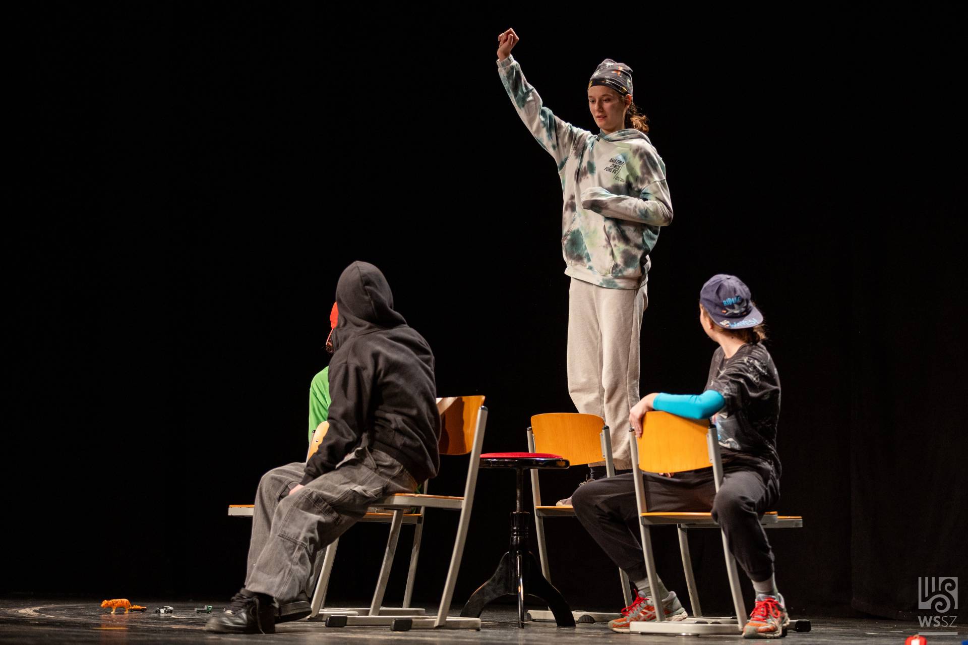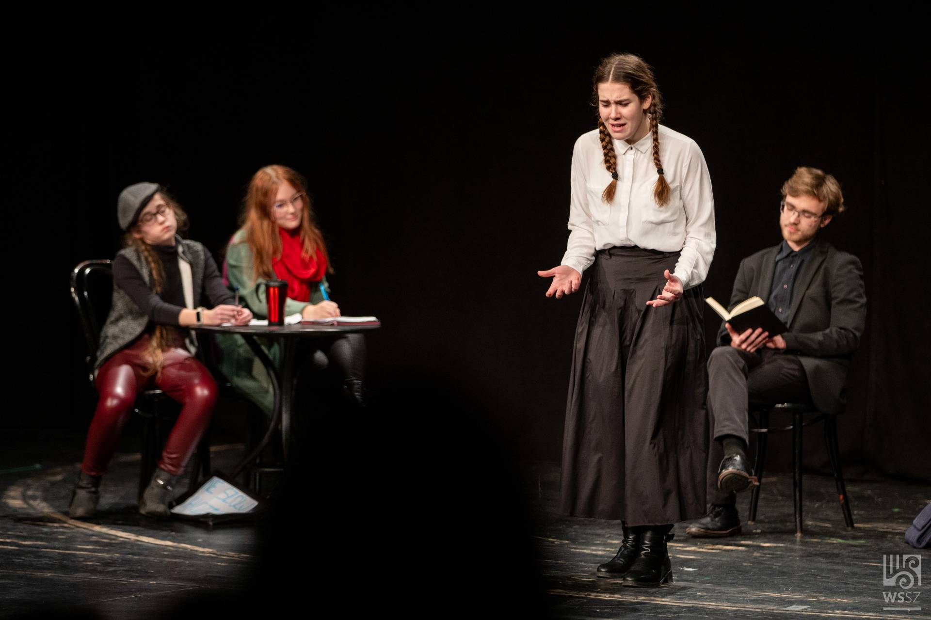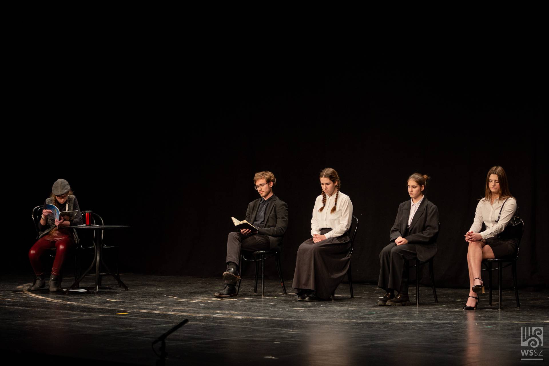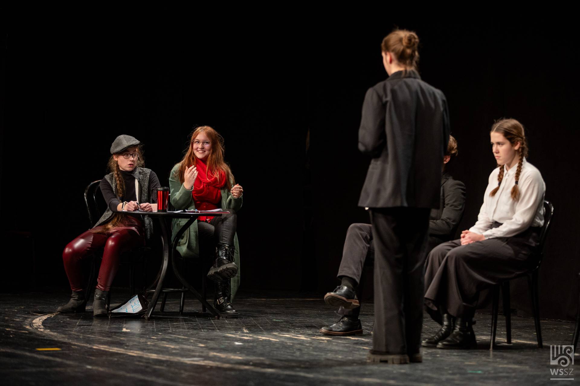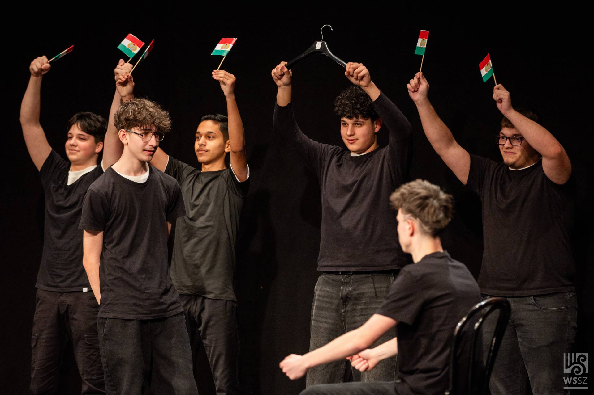 Budapestről érkezett az Újpesti Két Tanítási Nyelvű Műszaki Technikumból a hatfős fiú színjátszó csapat. Mivel színpad nem állt rendelkezésükre, többnyire a technikum könyvtárában gyakoroltak. A jelenetet felkészítő tanáruk, Pusztai Gyula szerkesztette Örkény István és Bödőcs Tibor szövegeinek felhasználásával, valamint egy bölcs vicc segítségével.