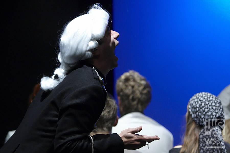 A főpróbán már látszott, súlyos anyag született, színésznövendékek lévén tényleg monumentális vállalkozás. A diákok roppant nehéz maszkokat vettek magukra, de elbírták. A szerda délutáni főpróbát láttuk: a nagy csönd után megérdemelték a tapsot az alkotók…